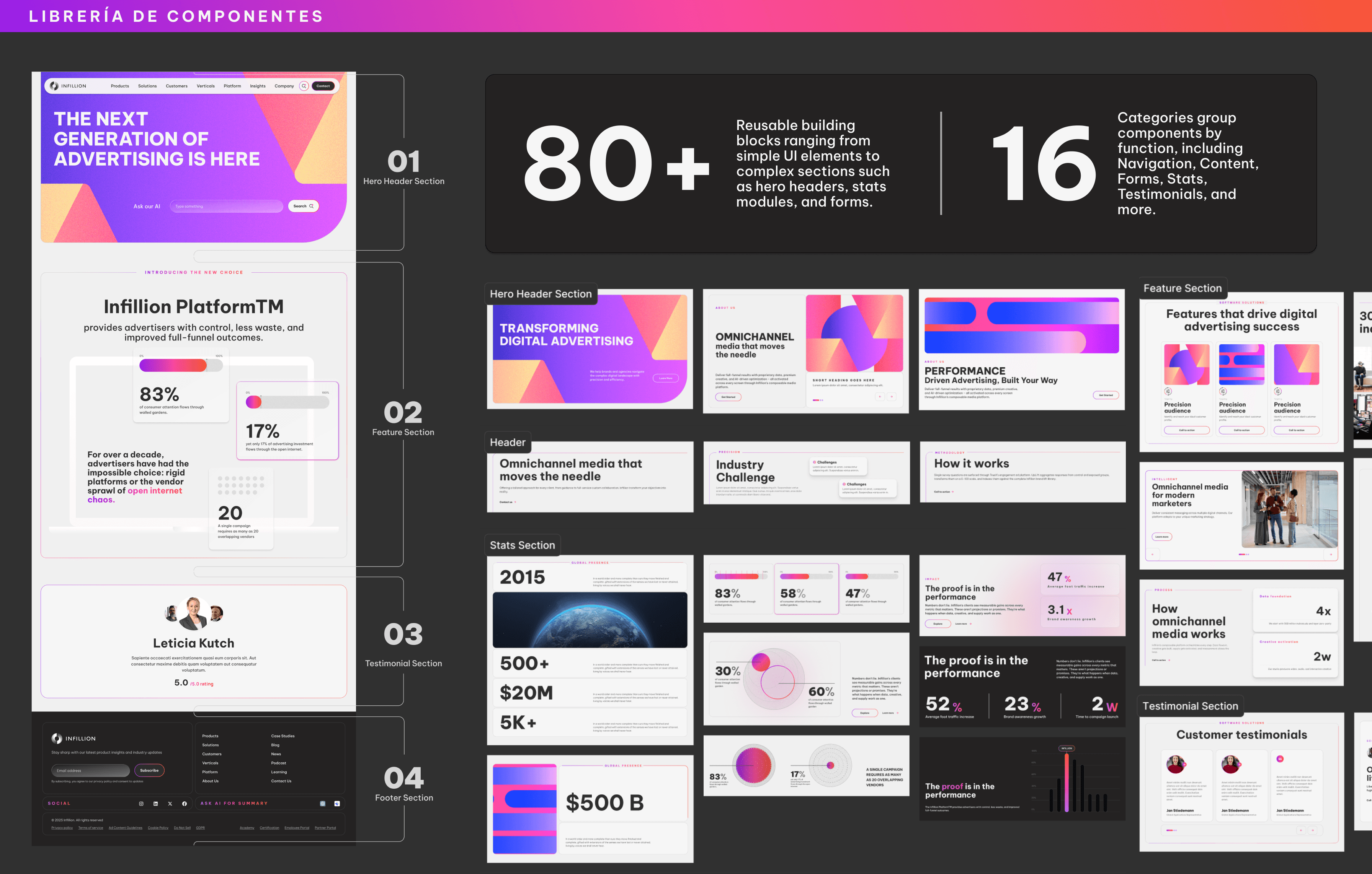 Components were structured to be interchangeable within categories, enabling quick iteration while maintaining consistency across pages.